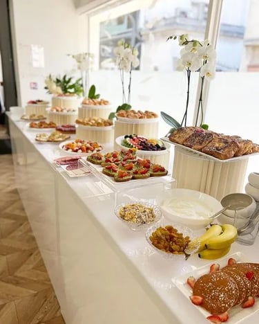 Buffets et Brunchs : Présentations raffinées et savoureuses de nos buffets gourmands et brunchs.